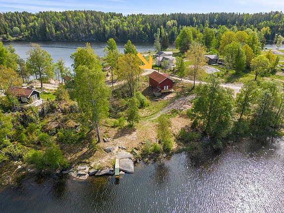 Dette er et attraktivt hyttefelt med flotte fellesfasiliteter som strand med toalettfasiliteter, kanoer/småbåter, volleyballbane og felles peisestue i hovedhus.