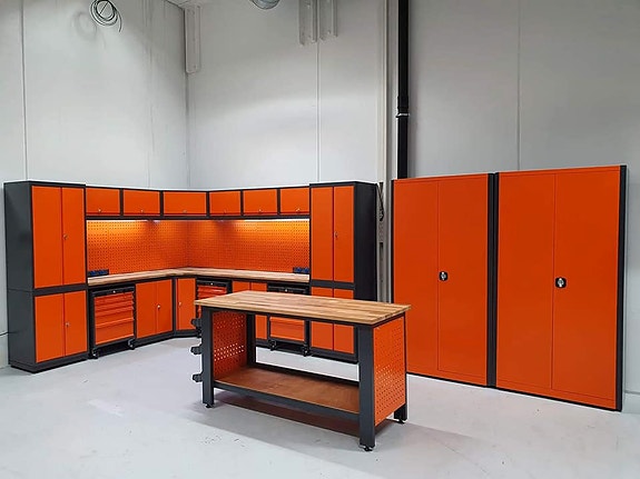 Merkevaren Verkstedsystem selges. Verkstedsystem driver med driver med design, utvikling, produksjon, import og salg av primært garasje innredninger og arbeidsbenker.