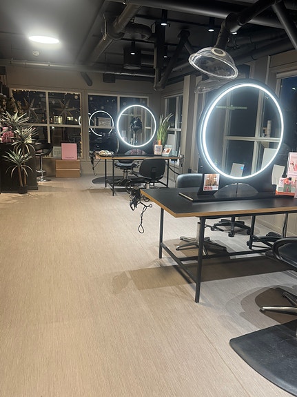 Salongen hadde sin oppstart i 2017 og er oppusset i 2023. Den er stor, luftig med moderne interiør.
