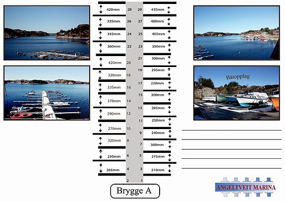 Innhold: 8 stk betongbrygger 2,40 x 12 M, 2 stk. trebrygger 2,00 x 15 M