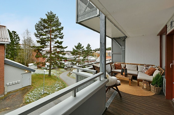Leiligheten ligger flott til med god intern beliggenhet i borettslaget.