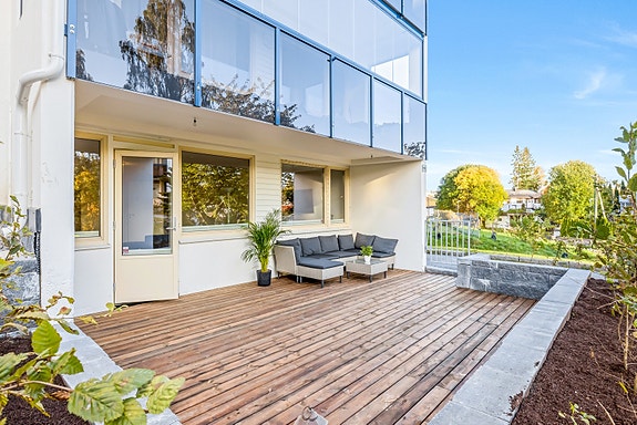 - Sydvestvendt og usjenert markterrasse på 26 kvm