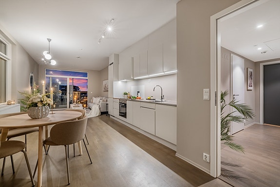Kvadratmeterpris tilsvarer prisantydning pluss fellesgjeld per kvadratmeter (p-rom eller BRA-i). Prisene i grafen er avrundet til nærmeste 1000 kr.