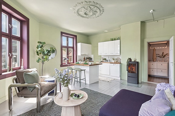 Lys & sjarmfull 2-roms hjørneleilighet - Takhøyde 2,96m - Rosett - Lave fellesutg & omk - Peis - Godt førstegangskjøp