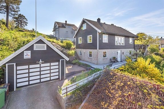 <P>Vågsbygd - Flott enebolig m/ garasje og stor terrasse - Høyt og fritt beliggende med gode sol- og utsiktsforhold -</P><P> </P><P>Flott enebolig med garasje og stor terrasse i rolig og barnevennlig område i Vågsbygd, kun ca. 6 km. fra Kristiansand sentrum. Høyt og fritt beliggende med gode sol- og utsiktsforhold mot Kristiansand. Garasje på ca. 23 kvm. like ved (varmekabler i siste del oppkjørsel). Utvendig bod på ca. 6 kvm. Praktisk familiebolig med fornuftig planløsning og god lagringsplass.</P><P>*Skiftet en del vinduer i stue og soverom i 3. etasje</P><P>*Skiftet ytterdør ved hovedinngang og utgang bak, samt ny verandadør 2014/2015</P>