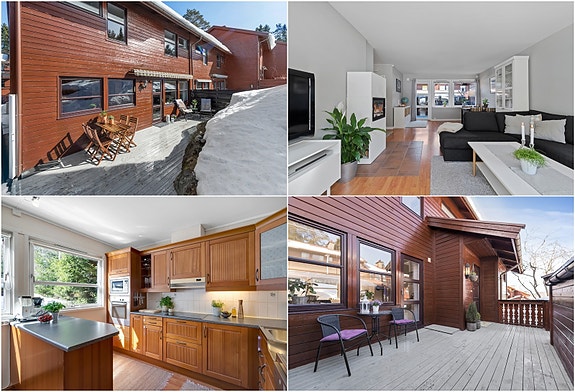 Attraktivt enderekkehus over to plan med flotte solrike uteplasser og garasje. Velkommen!