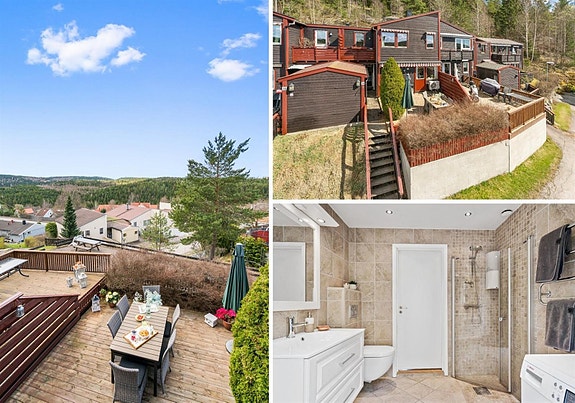 Egen sydvendt veranda med gode solforhold og utsikt over nabolaget og Nøstvedtmarka.