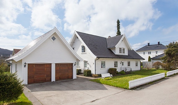 Stilfull enebolig og garasje sentralt i Lyngdal sentrum. BUD MOTTATT!
