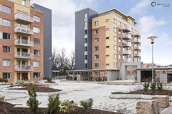 Hyggelige opparbeidede utearealer med grøntområder, hellelagte områder, prydbusker og blomster. Det er sittegrupper, lekeområder. Sykkelparkering.