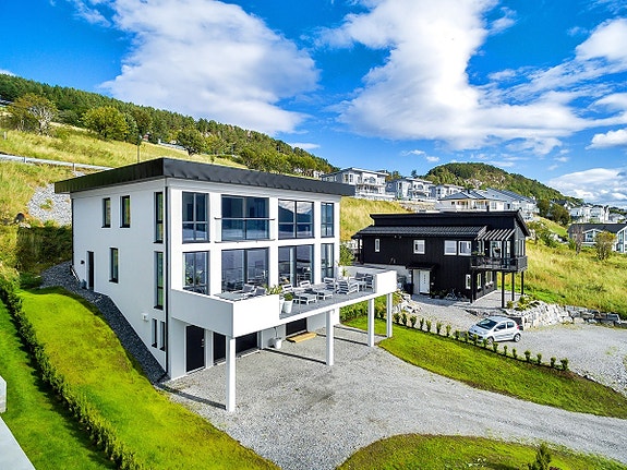 Moderne og tiltalende enebolig beliggende i sjøkanten på Hessa, ca 6 km vest for Ålesund sentrum. Boligen er stilfullt gjennomført og holder høy standard.