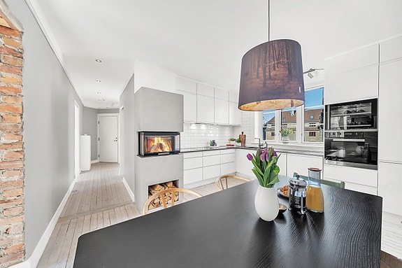 Gjennomgående og gjennomført 3-roms leilighet med nytt kjøkken fra HTH, nymalte flater og peisovn