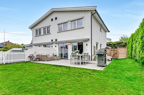 Lekker halvpart av tomannsbolig fra 2014 med høy standard. Stor terrasse, hage, garasje, p-plass og 3 bad.