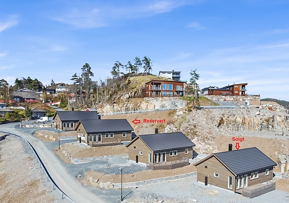 Fire flotte moderne eneboliger med alt på en flate klare for innflytning boligene ligger i et nyetablert og meget attraktivt boligfelt , gode solforhold og fin utsikt. Boligene har høy standard og ingen boplikt. Ferdig opparbeidet tomter med store oppgruset parkeringsareal til hver tomt , herunder alt av hagemurer utvendige terrasser m.m. Kort avstand til sentrum, herunder skoler, butikker, badevann og havna. Barnehage i umiddelbar nærhet. Det er også gangavstand til kjøpesenteret og en rekke butikker på Bergsmyr.