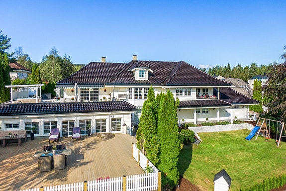 Sønnaveien 25 er en eksklusiv villa på 485 kvm, over tre innholdsrike etasjer. Boligen ligger på en stor, nydelig tomt, hvor det er tilrettelagt for å nyte solen helt usjenert. Her er det deilig hage og omfangsrike terrasser, den ene dels overbygd, med jacuzzi.