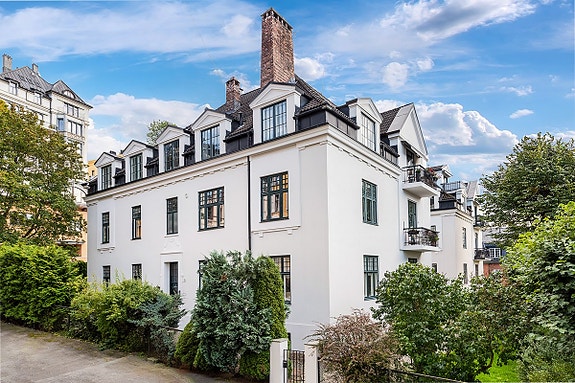 Herskapelig leilighet over hel etasje - Høy standard - Tre stuer - Plassbygd kjøkken - Balkong - Attraktiv beliggenhet