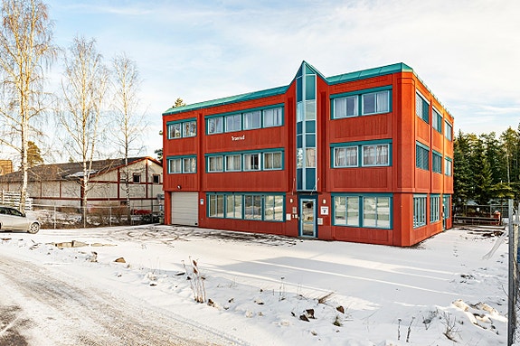 Eiendommen er på 1019 kvm og har blant annet 12 parkeringsplasser. I tillegg er det tinglyst parkering for 25 biler på nabotomt. Bygningen har BRA på hele 891 kvm, fordelt med 297 kvm på hver etasje. Etasjene fremstår som velholdte, og bygningen har heis. I første etasje er det blant annet et romslig lagerrom/garasje med stor port. Det er garderobe, wc-rom, kontorer, møterom med mer i alle etasjer. I tillegg er det kjøkken/pauserom i første og andre etasje.