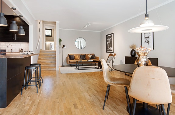 Leiligheten har en god beliggenhet i bygget med direkte adkomst fra privat inngangsdør. Innvendig fremstår boligen som godt vedlikeholdt med jevnlige oppgraderinger i senere tid. Her nevnes blant annet overflatebehandling i 2020/21, oppgradering av EL i 2021, kjøkken fra 2014 med oppgradering i 2019, diverse oppgradering av bad i 2009, fliser i gang fra 2015 og kjøkken i 2019 og teppe på soverom/kontor i 2020.
