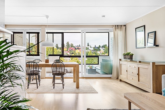 Innbydende 4R leilighet i 4etg med lyse oppholdsrom, innglasset balkong og garasje | Ingen innsyn | Store grøntområder