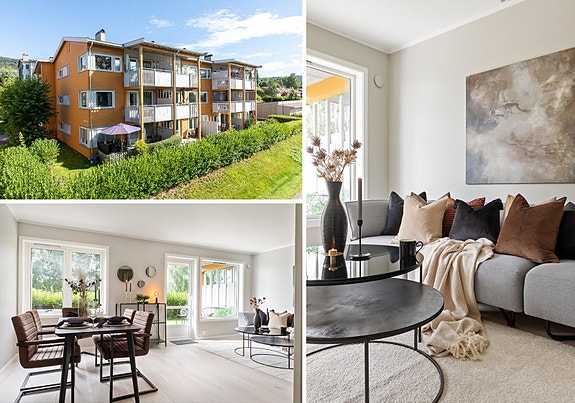 Lys og fin leilighet med rolig og solrik plassering på Smestadmoen. Leiligheten har trinnfri adkomst med overbygget inngangsparti og sportsbod vis-a-vis boligblokken. Biloppstillingsplass med motorvarmer på nordsiden av blokkene. Leiligheten inneholder entré, stort soverom (9,9 kvm), kontor el.l. (4,2 kvm), bad/wc/vaskerom, stue, spisestue og kjøkken i dels åpen løsning. Fra stuen er det utgang til vestvendt og delvis overbygget terrasse på 14 kvm, skjermet og lun uteplass i sommerhalvåret. Det er gjennomgående nye/oppgradert flater og leiligheten fremstår svært tiltalende. Den ligger rolig og tilbaketrukket til med kort veg til dagligvarebutikker, bussholdeplass, Høyskolen samt fine turområder i nærmiljøet.