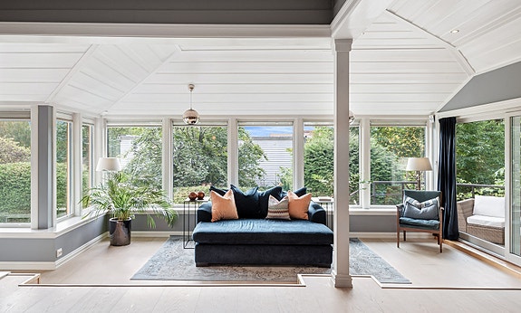 Har dette flotte huset på Smestad alt du ønsker deg? Den er lys og lekker med solrik og sentrumsnær beliggenhet, den har en romslig stor hage med lekeplass til barna, den har en meget bra planløsning, nydelig siktlinjer, en stor del i kjelleren som i dag leies ut for kr. 16 000,- pluss strøm og dobbeltgarasje med stor asfaltert gårdsplass.