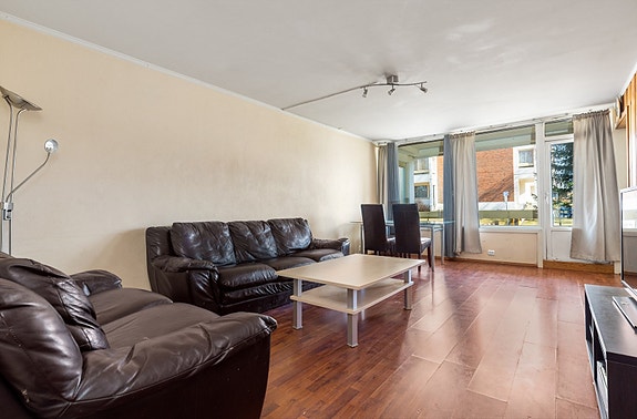 Boligen har behov for oppussing for å tilfredsstille dagens krav til standard. Her kan man vente seg et adskilt kjøkken, stue med store vindusflater fra 2005, flislagt bad, separat wc, to gode soverom og et innredet rom. Utgang fra stuen til en 10,5 kvm sydøstvendt balkong med gode solforhold. Varmtvann og tv/internett er inkludert.