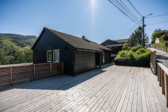 -Stor, nordvestvendt terrasse på 86,7 kvm ved inngangsparti i 1.etg