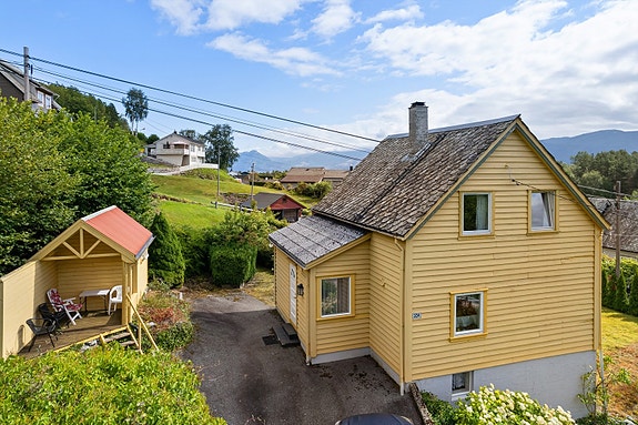 Eiendommen ligger ved Fv 49 i Skuteviksdalen, ca. 350 meter fra ferjekaien.