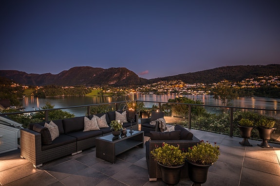 En nydelig enebolig med naturskjønn beliggenhet på Åstveit. Boligen har særdeles flotte kvaliteter med terrasse på hele 170 kvm. med egen hagestue og utekjøkken. Boligen har også dobbel garasje med en praktisk utebod. Her bor man sentralt, samtidig tilbaketrukket i rolige og landlige omgivelser. Med sin usjenerte beliggenhet og sjøutsikt ligger alt til rette for hygge i en ellers travel hverdag.