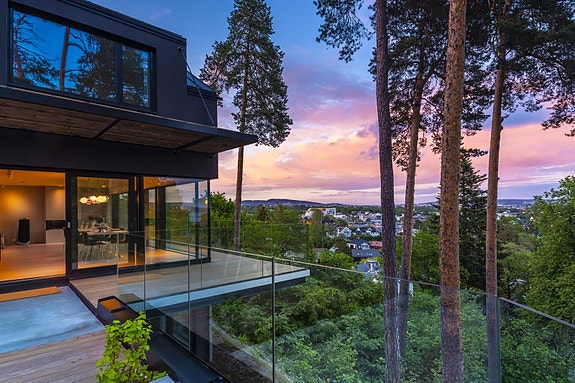 Moderne, stort og innholdsrikt funkishus med luftig uttrykk og store vindusflater. Svært representativt med skjermet beliggenhet i blindvei nyoppført i 2019. Eiendommen har 457 kvm BRA på en tomt på 1055 kvm, med nydelige uteplasser og utsikt mot by og deler av Oslofjorden.