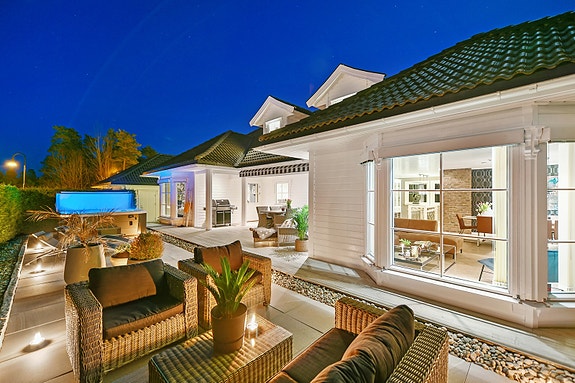 Flott og eksklusiv enebolig med påkostet og skjermet hage - 4 soverom - Dobbel garasje - Bergvarme/​vannbåren gulvvarme