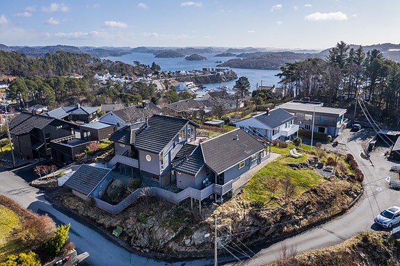 Særegen enebolig med sentral beliggenhet på flott utsiktstomt.