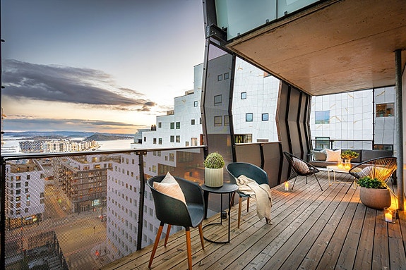 Trelastgata 21, en unik 2- roms med balkonger på hele 23 m2. Spektakulær utsikt