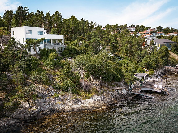 Nesoddtangen - arkitekttegnet enebolig med den aller beste beliggenhet - brygge, strandlinje og panorama sjøutsikt