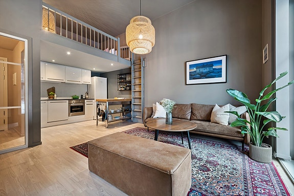 Lekker 2-roms leilighet med hems | Inngjerdet terrasse på ca. 23 kvm | Felles takterrasse med panoramautsikt!