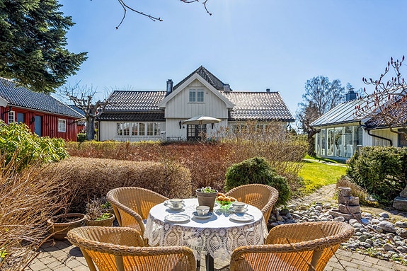 Unik eiendom i naturskjønne, landlige omgivelser | Solrik og pent opparbeidet tomt | Dbl. garasje, uthus og sommerstue