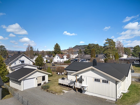 BRUMUNDDAL - Koselig enebolig med alt på ett plan. Garasje og solrik uteplass. Nærhet til "alt"!