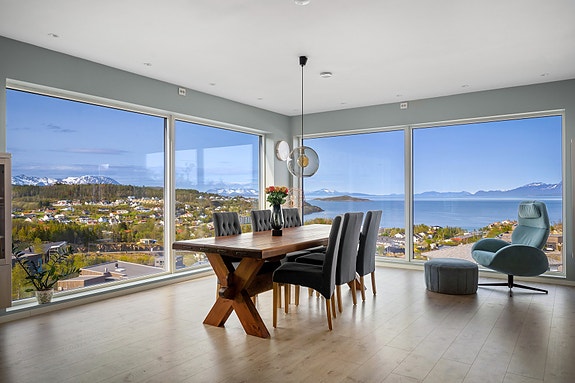 Boligen ligger fint til på toppen og i ende av blindgate med fantastisk sol- og utsiktsforhold!