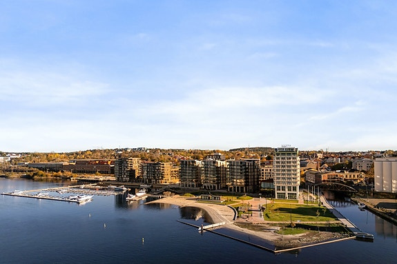 Leiligheten har en unik beliggenhet på Verket, en bydel beliggende attraktivt nær sjøen ved Møllebyen og Moss sentrum.