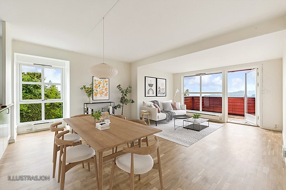 Velkommen til Grenåveien 43- Presentert av Charlotte Bårdsen i DNB Eiendom! (Dette er kun en illustrasjon på hvordan møbleringen kan se ut)