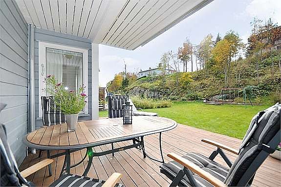 Nyere enebolig med gjennomgående lys og innbydende standard.