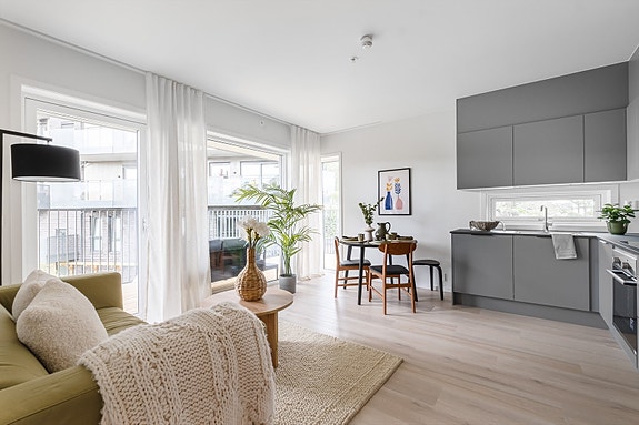 Opplev komforten av en splitter ny 3-roms med lyst gulv, moderne kjøkken og balkong på hele 17 kvm. Perfekt beliggenhet i et veletablert område med nærhet til nødvendige fasiliteter og flotte friluftsmuligheter i nærområdet. I dette frittstående borettslaget kan du selv velge om du vil ha fellesgjeld eller ikke. Ingen forkjøpsrett og IN-ordning.