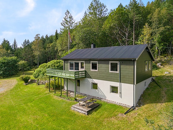 Innholdsrik enebolig | Brukt som fritidsbolig av selger | Tomt på ca. 3,8 mål | Uthus/Redskapsbod | 5 soverom