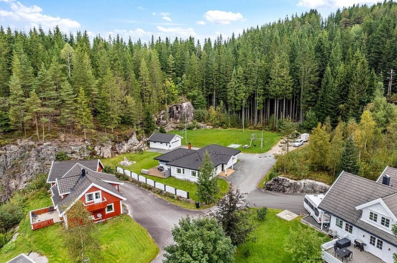 Eiendommen er en del av et mindre boligfelt og denne tomten ligger usjenert og fint til. Her har man umiddelbar nærhet til fine turområder.