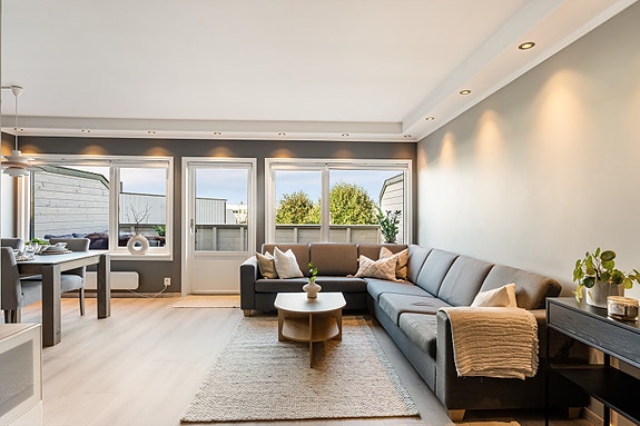 Olsvik | Flott 3-roms endeleilighet med solrik balkong. Meget barnevennlig område. Ingen fellesgjeld. Garasje med lader.