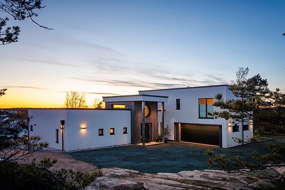 På en høyde på vestsiden av naturskjønne Kråkerøy, like ved Langøyåsen ligger Jegerveien 8.
