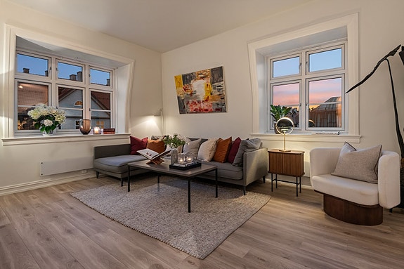 Lys, stor og tiltalende 3-roms hjørneleilighet o/2 plan | Særdeles flotte lysforhold | 2 bad |Peis | Idyllisk bakgård