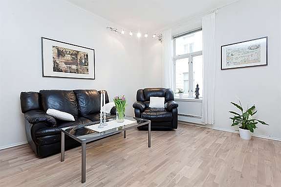 Flott leilighet med lyse og tidsriktige flater samt ekstra takhøyde og dype vinduskarmer som skaper en svært god atmosfære. Godt utnyttet entré med romslig skyvedørsgarderobe. Flott og lyst flislagt bad oppgradert ca 2004, inneholder bl.a. egen dusjnisje. Lys og lekker stue/oppholdsrom med ny parkett fra 2011 og vindusflater mot rolig bakgård for godt innlys. Det ble i 2011 lagt mønstertapet på den ene veggen i stuen, som på en god og stemningsfull måte bryter med de øvrige lyse flatene i leiligheten. Oppbygd seng som skaper en bedre romfølelse og ivaretar arealet på en svært effektiv måte. Åpen løsning til smakfullt kjøkken med bl.a. delikate marmorfliser over benk fra 2011, god skap- og benkplass samt egen spiseplass. Leiligheten disponerer eget vaskerom med inngang fra fellesareal, samt bod i kjeller og på loft.