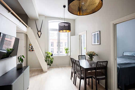 Stilig og moderne 2-roms fabrikkleilighet med generøs takhøyde på 3,3 m| Store vinduer| Hems på 14 kvm |IN-ordning |Heis