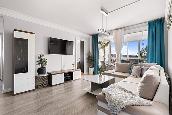Romslig & lys 3-roms hjørneleilighet med innglasset balkong på 8 m² - Garasjeplass med lader - Attraktiv beliggenhet!