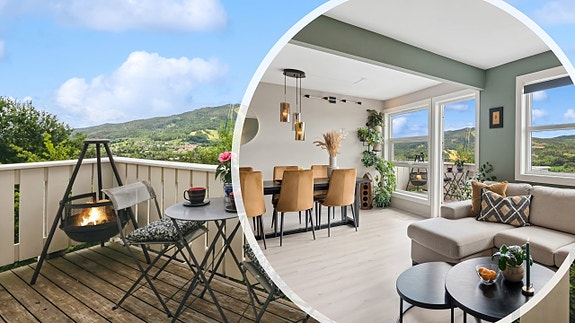 - Fine terrasser og passe stor hage gir deg muligheten til å nyte utendørsområdet. Utsikten er magisk både ute og inne. Boligen ligger i et barnevennlig område, nær marka. Dette gir flotte muligheter for friluftsliv og opplevelser. Gangavstand til skoler.